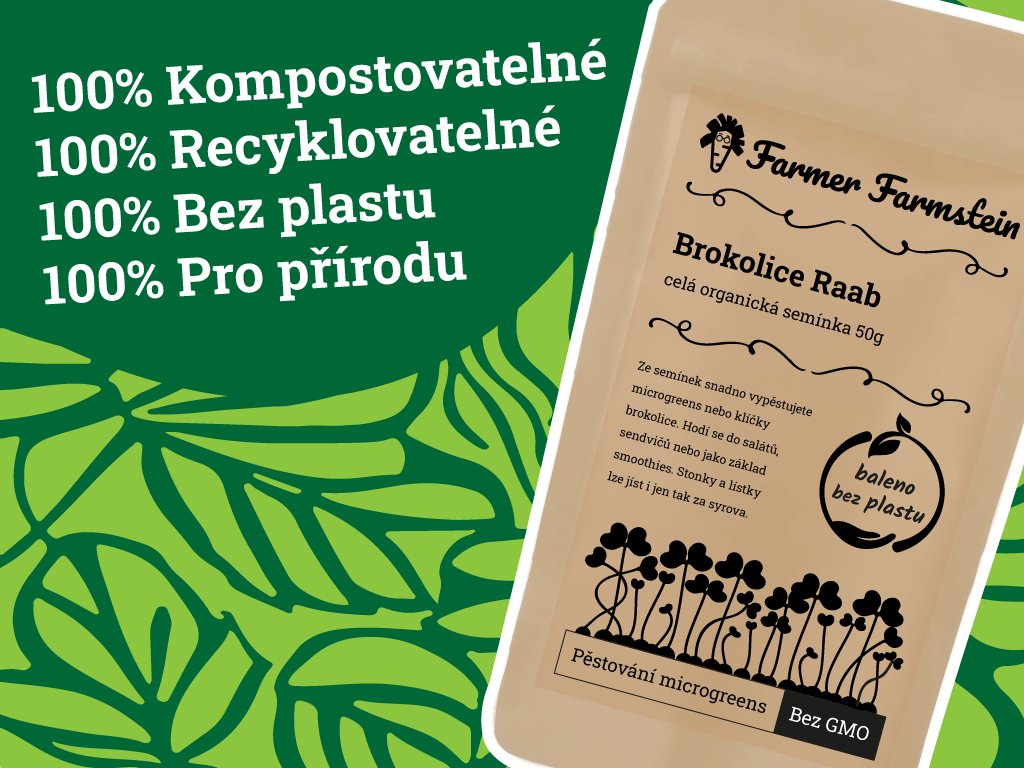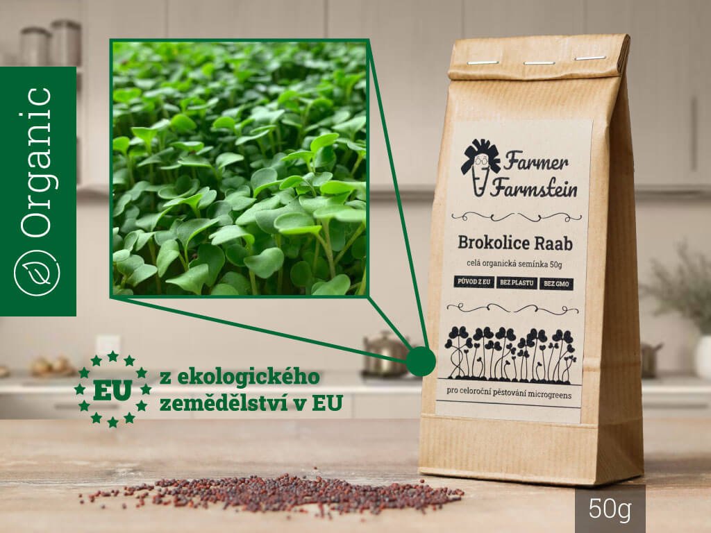 - Vysoká celoroční klíčivost – Čerstvou chuť brokolicové mikrozeleniny si můžete užívat nonstop díky vysoké celoroční klíčivosti semínek Farmer Farmstein. Pro maximální klíčivost můžete semínka před zasetím nechat přes noc ve vodě.