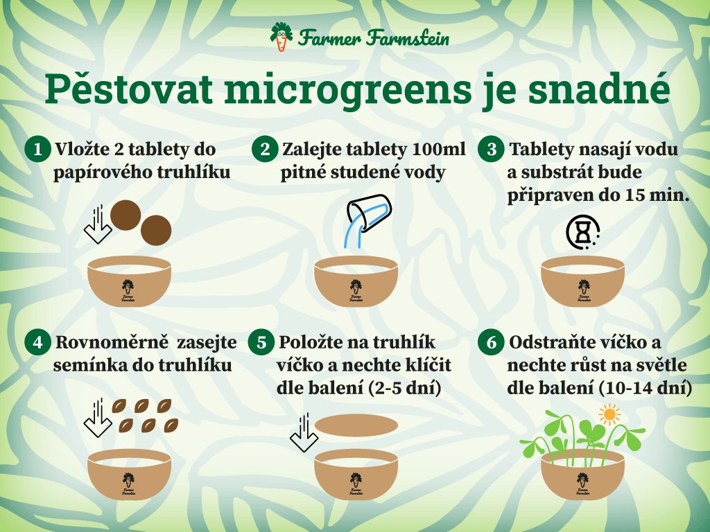 Jak pěstovat microgreens Farmer Farmstein